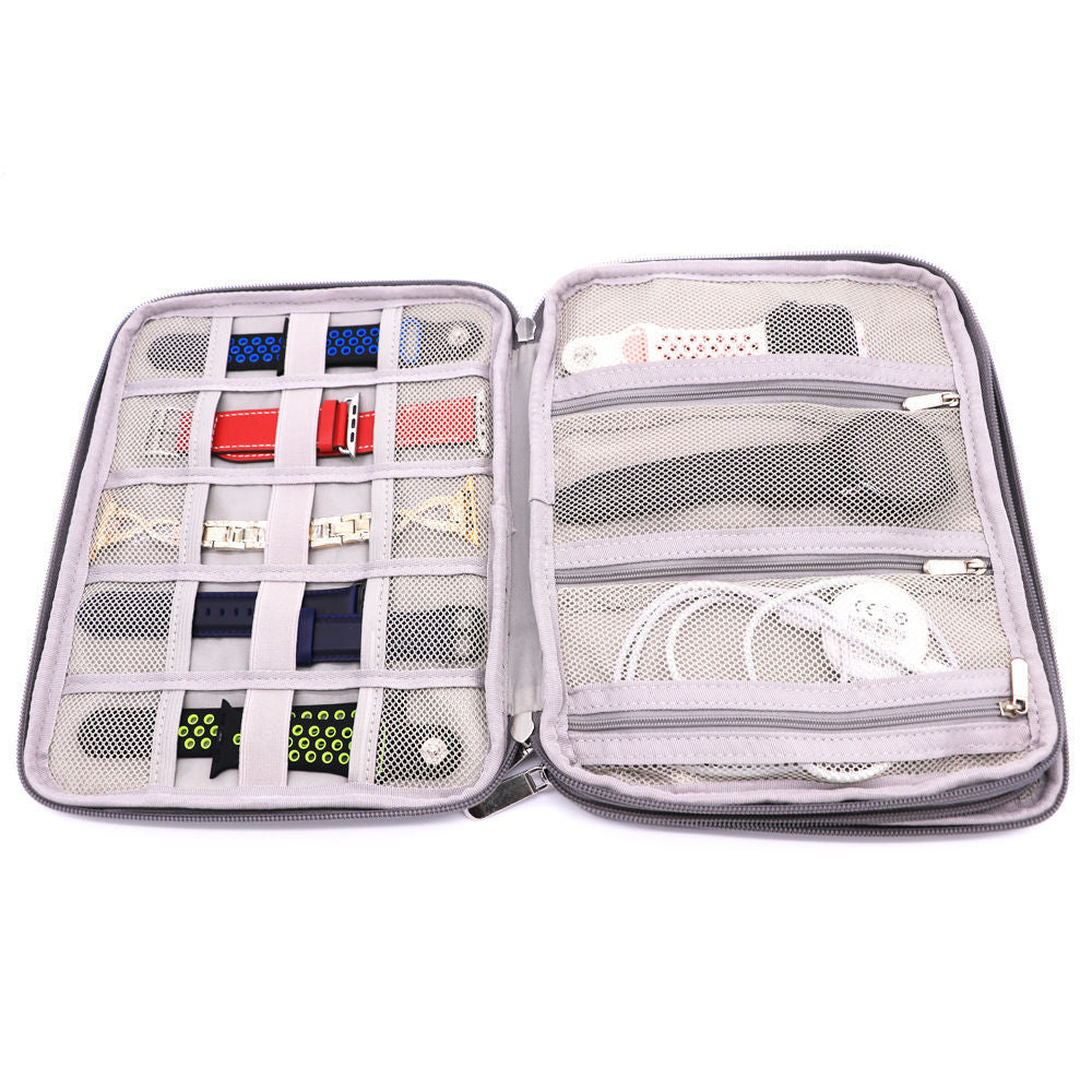 Keep smart watch bands and usb cable accessories in one consolidated organized case to save time along with space when traveling and switching your watches look.