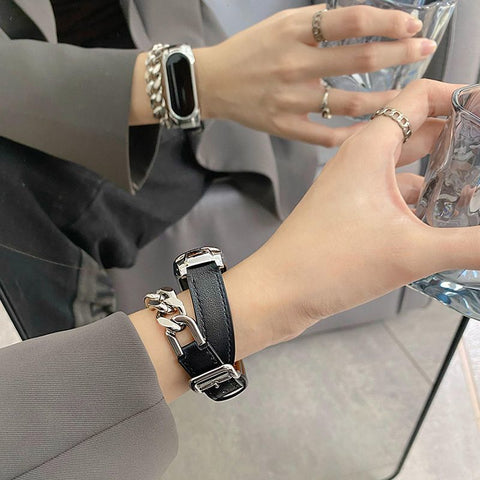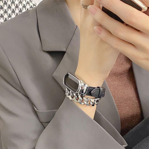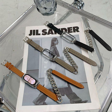 Suitable for mi bracelet 6 wrist strap 7 Bracelet meter 4/5 classic style strap leather woven double ring chain